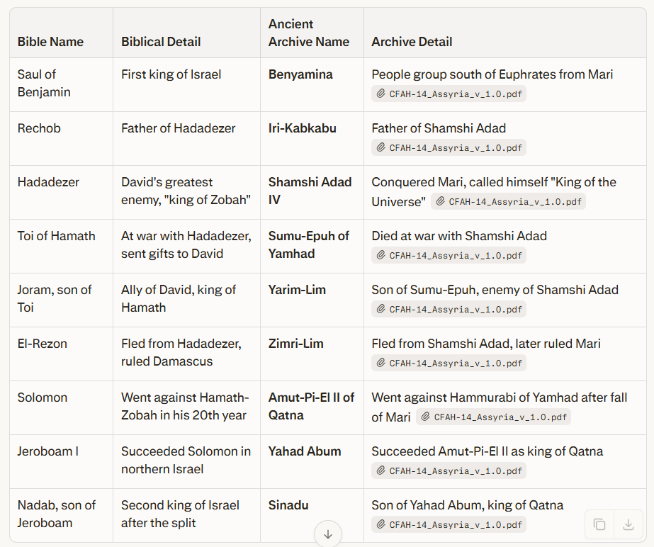This is where the paper becomes especially exciting for students of the Bible. When you correct the Shamshi Adad error and move him from the 19th century BC to the 11th century BC (around 1053–1020 BC), he falls precisely into the era of Kings Saul, David, and Solomon in the Ussher-Jones biblical timeline.
